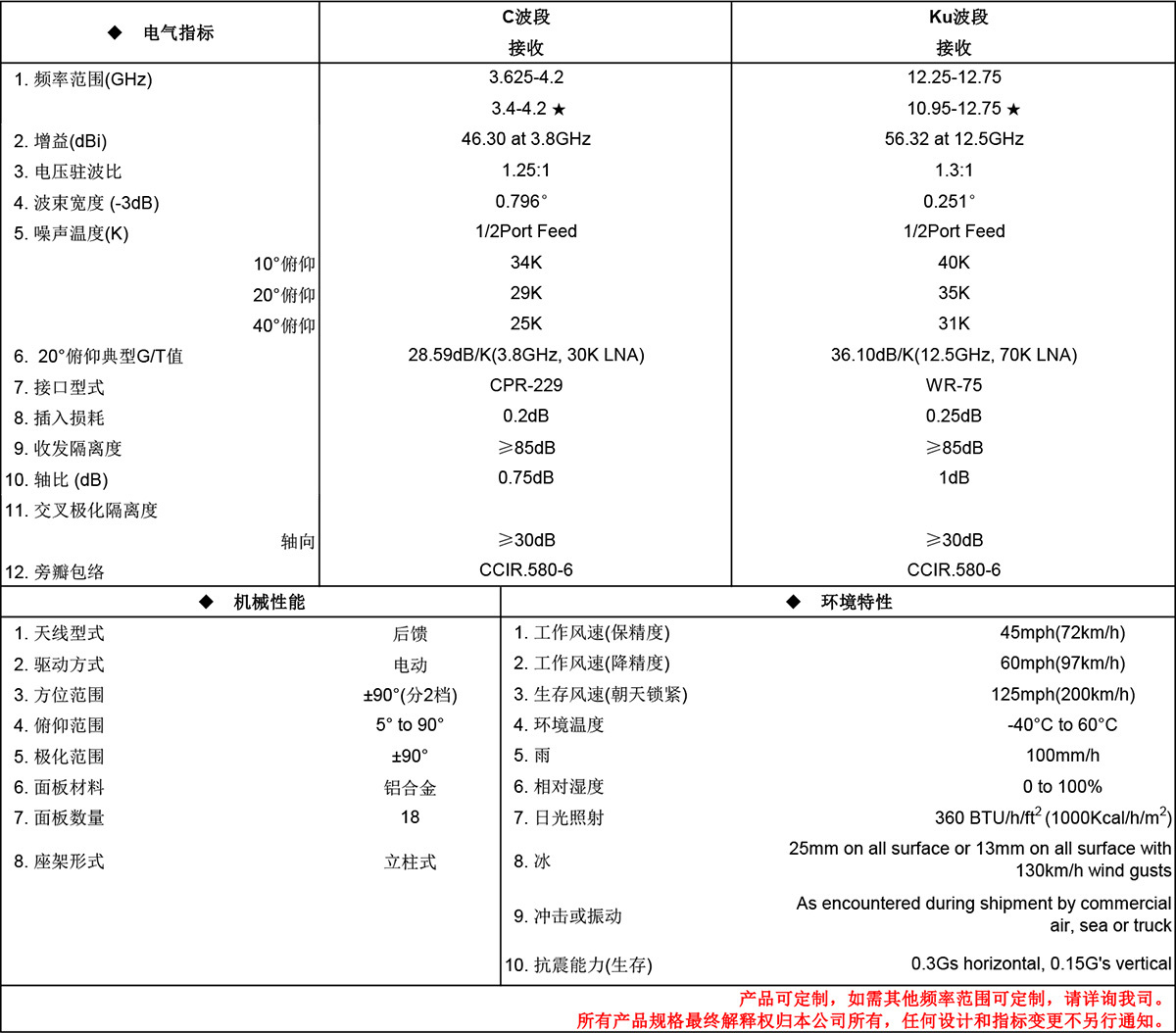 稳定性高;华信 6.2米C/Ku波段后馈卫星接收天线指标